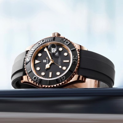 Corgeut Fashion Japan 24 Jewels NH35 40mm Yacht Watch Silver Automatic Men Watch Miyota YM Brushed Ceremic Bezel Rubber Band