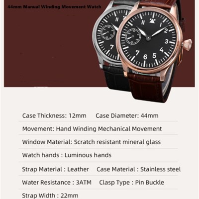 42mm Stainless Steel Sapphire Glass Vintage Panerai Style Manual Winding Watch Asia 6497 Seagull ST3600 Movement